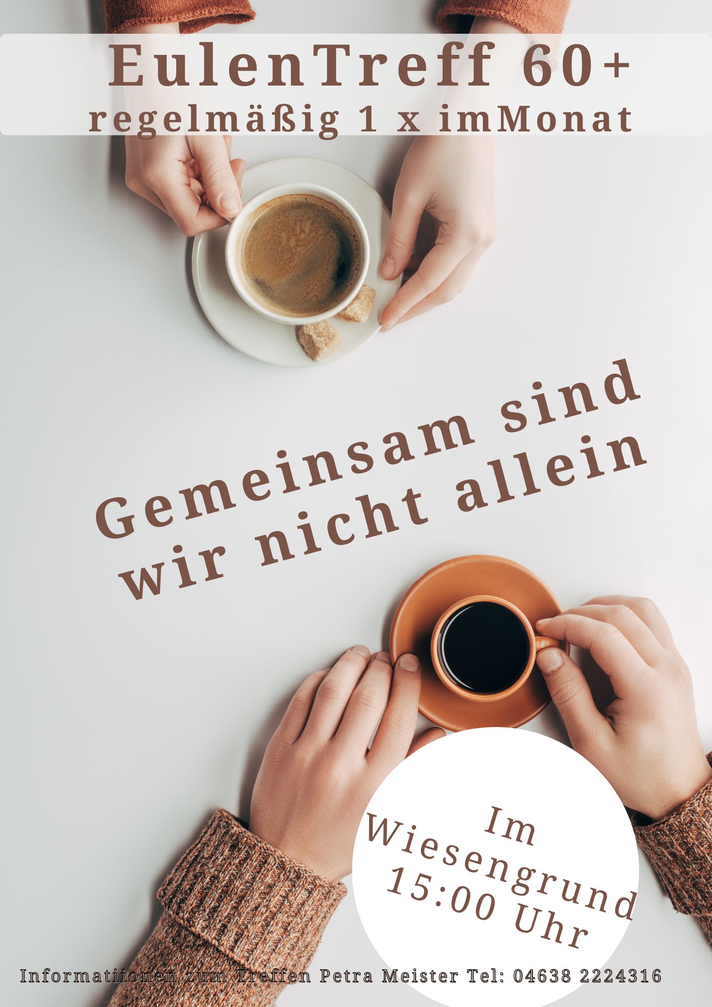 Fr21Jun15:00Fr17:00Eulen Treff 60+ (Copy)15:00 - 17:00 Im Wiesengrund, Im Wiesengrund 1, 24963 Tarp