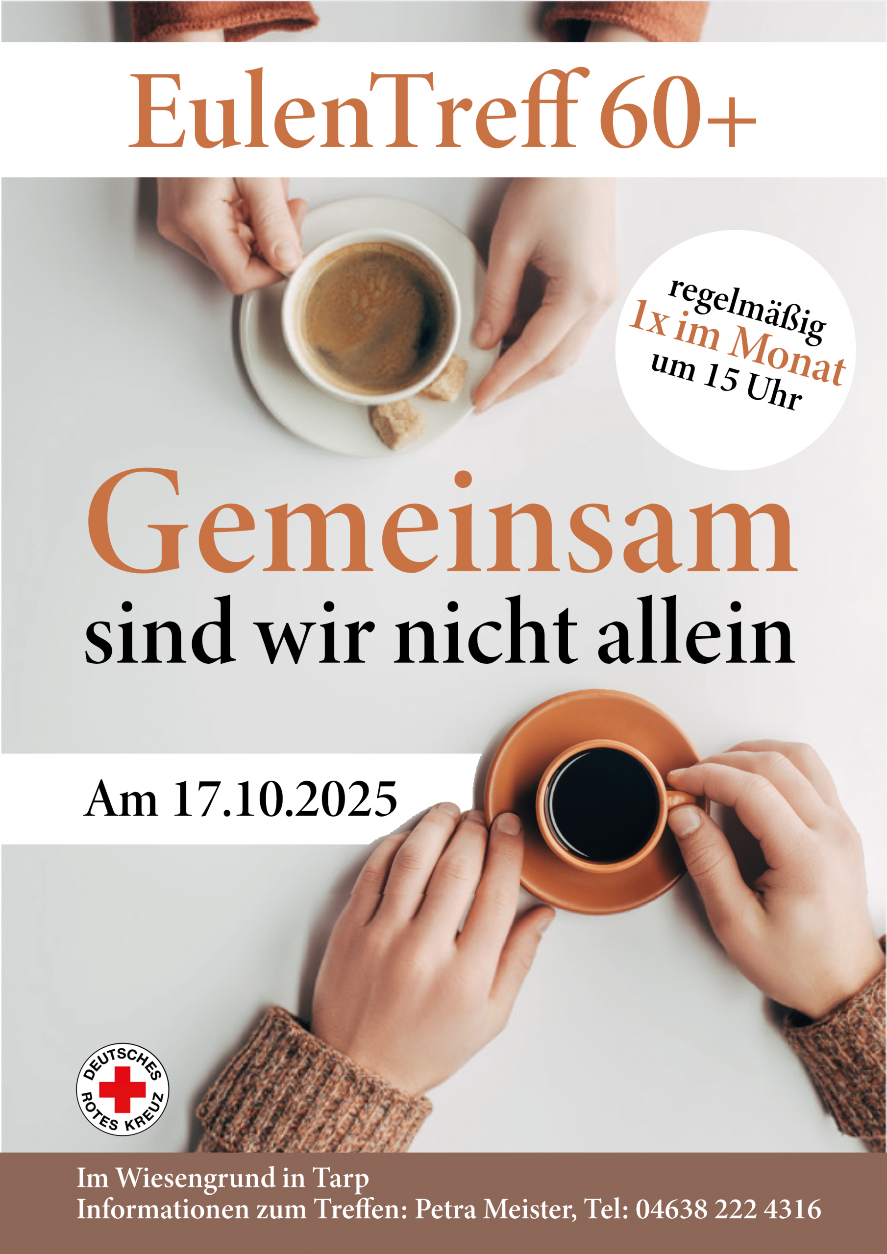 Fr17Okt15:00Fr18:00Eulentreff 60+Gemeinsam sind wir nicht allein15:00 - 18:00 Im Wiesengrund, Im Wiesengrund 1, 24963 Tarp