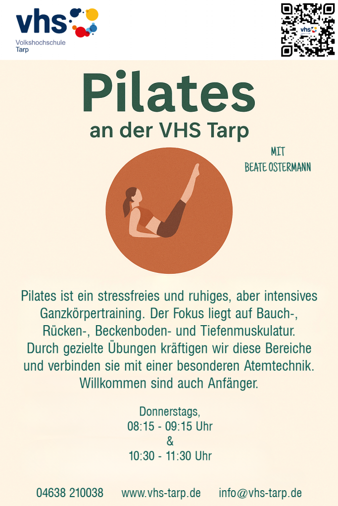 Pilates ist ein stressfreies und ruhiges, aber intensives Ganzkörpertraining. Besonderer Schwerpunkt sind Bauch-, Rücken-, Beckenboden- und Tiefenmuskulatur. Durch gezielte Übungen kräftigen wir diese und wenden dabei eine besondere Atemtechnik an. Durch die langsame Ausführung kann jeder schnell hineinfinden und sich diese besondere Methode zu Nutze machen. Pilates ist geeignet für jeden, willkommen sind auch Anfänger oder „Unsportliche“