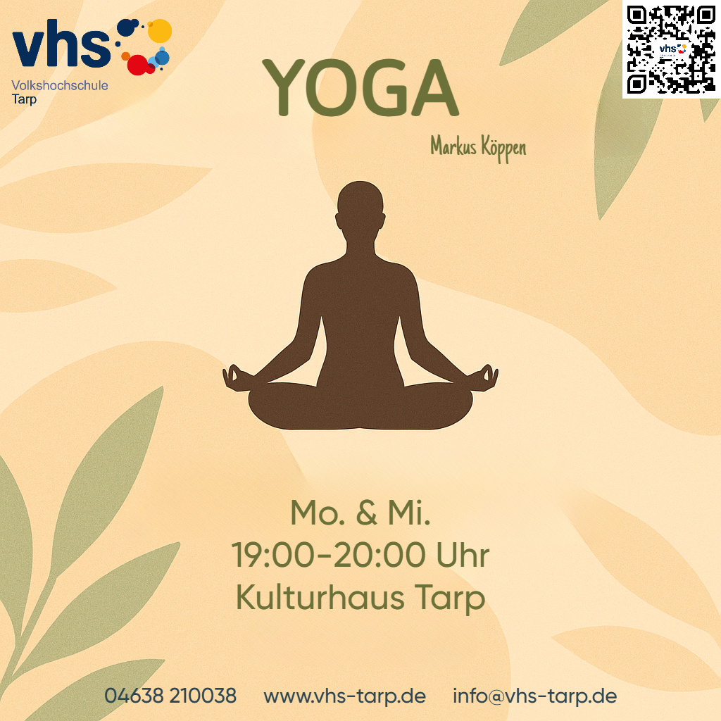 Mi14Jan19:00Mi20:00Repeating EventYogaYoga19:00 - 20:00 Tarp, Kulturhaus Veranstalter: VHS Tarp